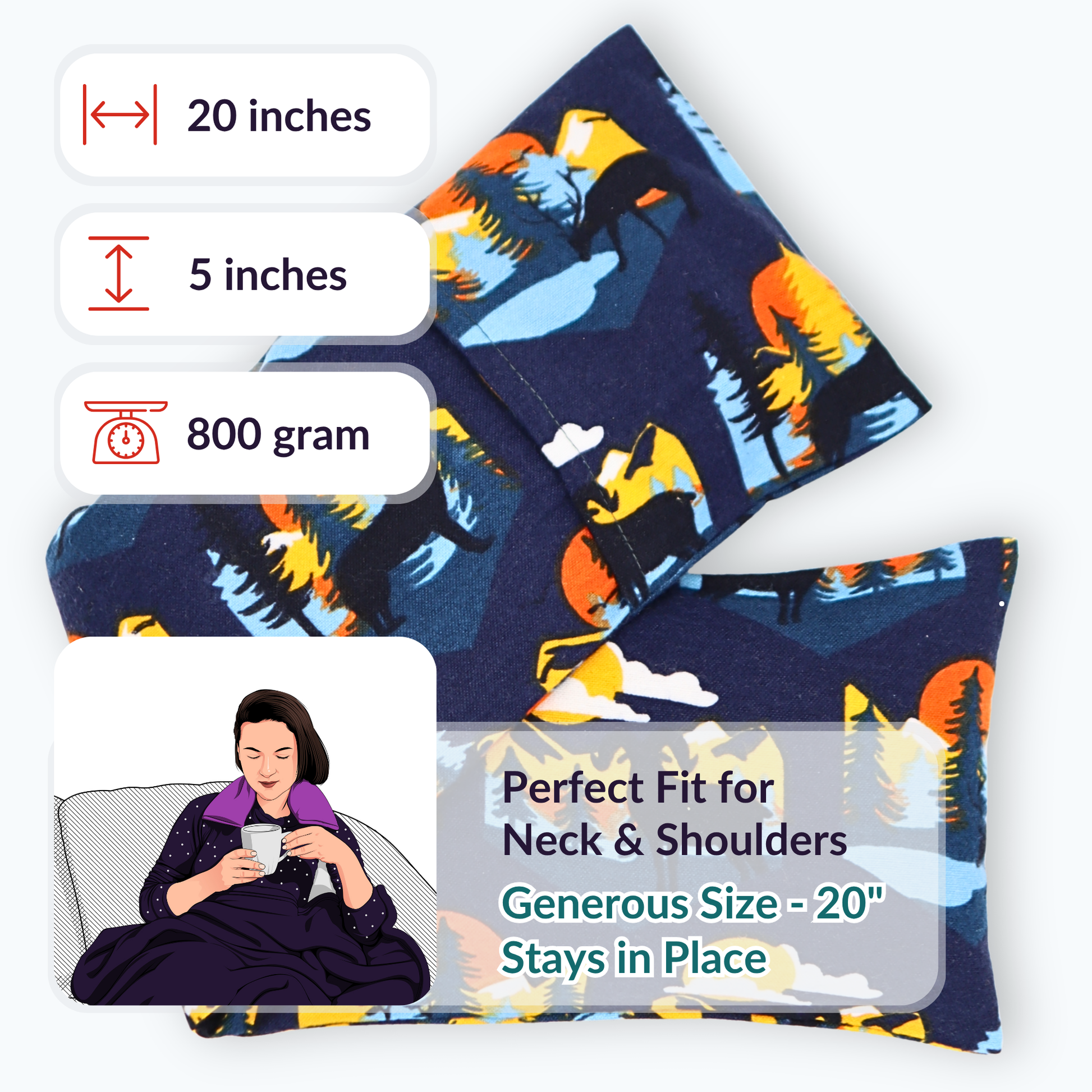 Sized at 20” x 5”, this heating pad molds comfortably to your neck, shoulders, back, stomach, or knees—delivering warmth exactly where you need it most.